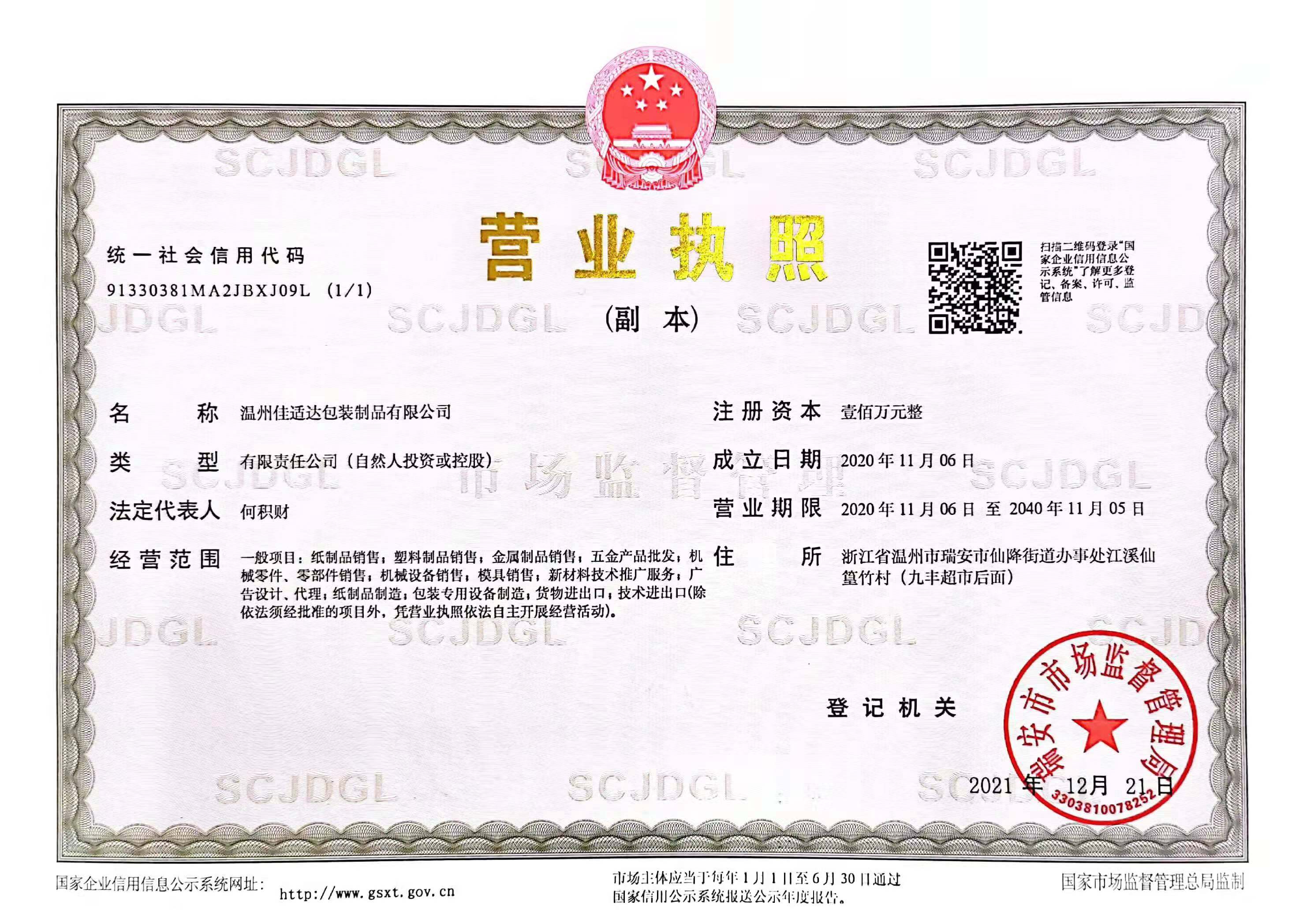 - WEN ZHOU JIASHIDA PACKING PRODUCT CO., LTD.